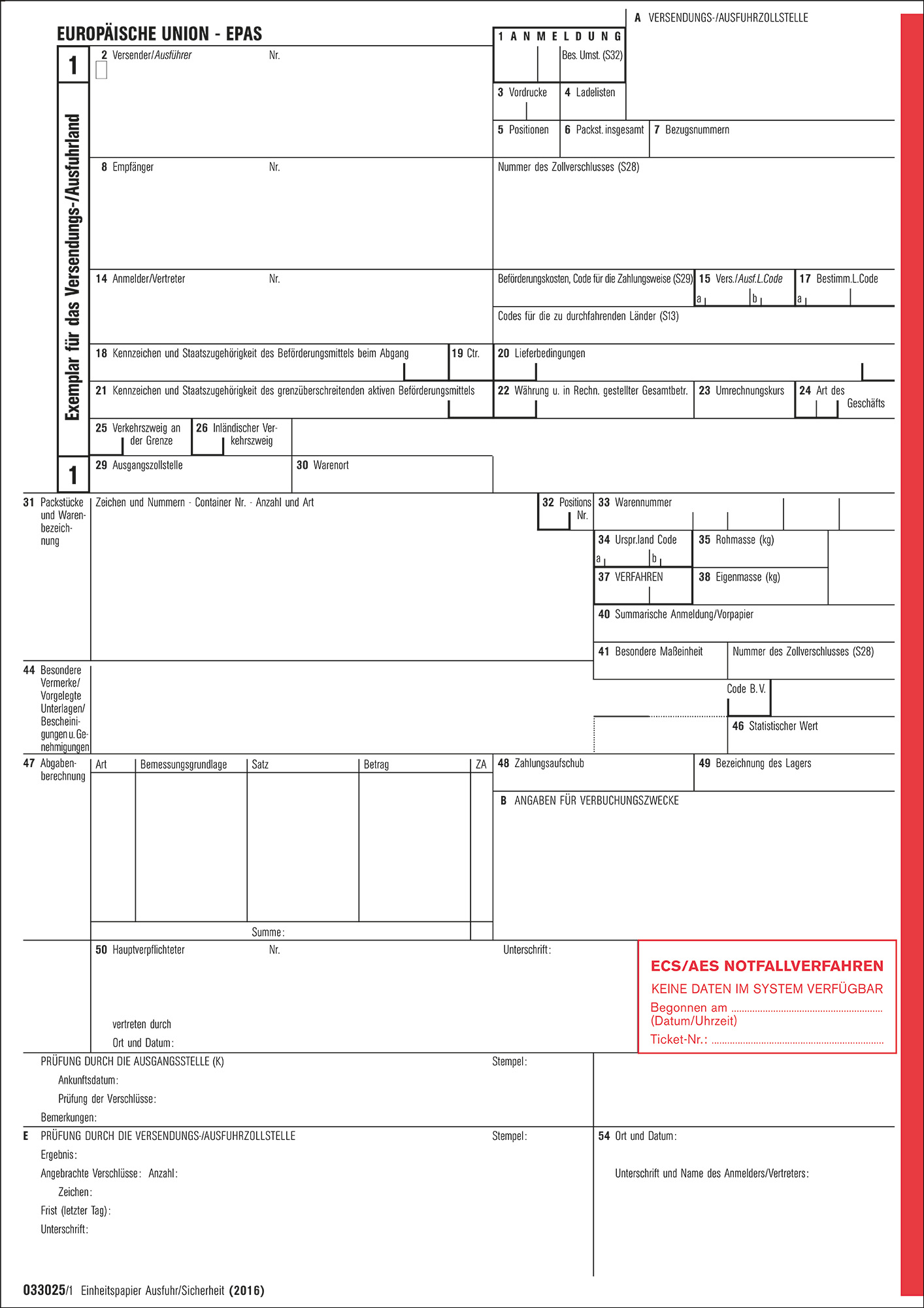 033025 Einheitspapier "EPAS" Ausfuhr/Sicherheit