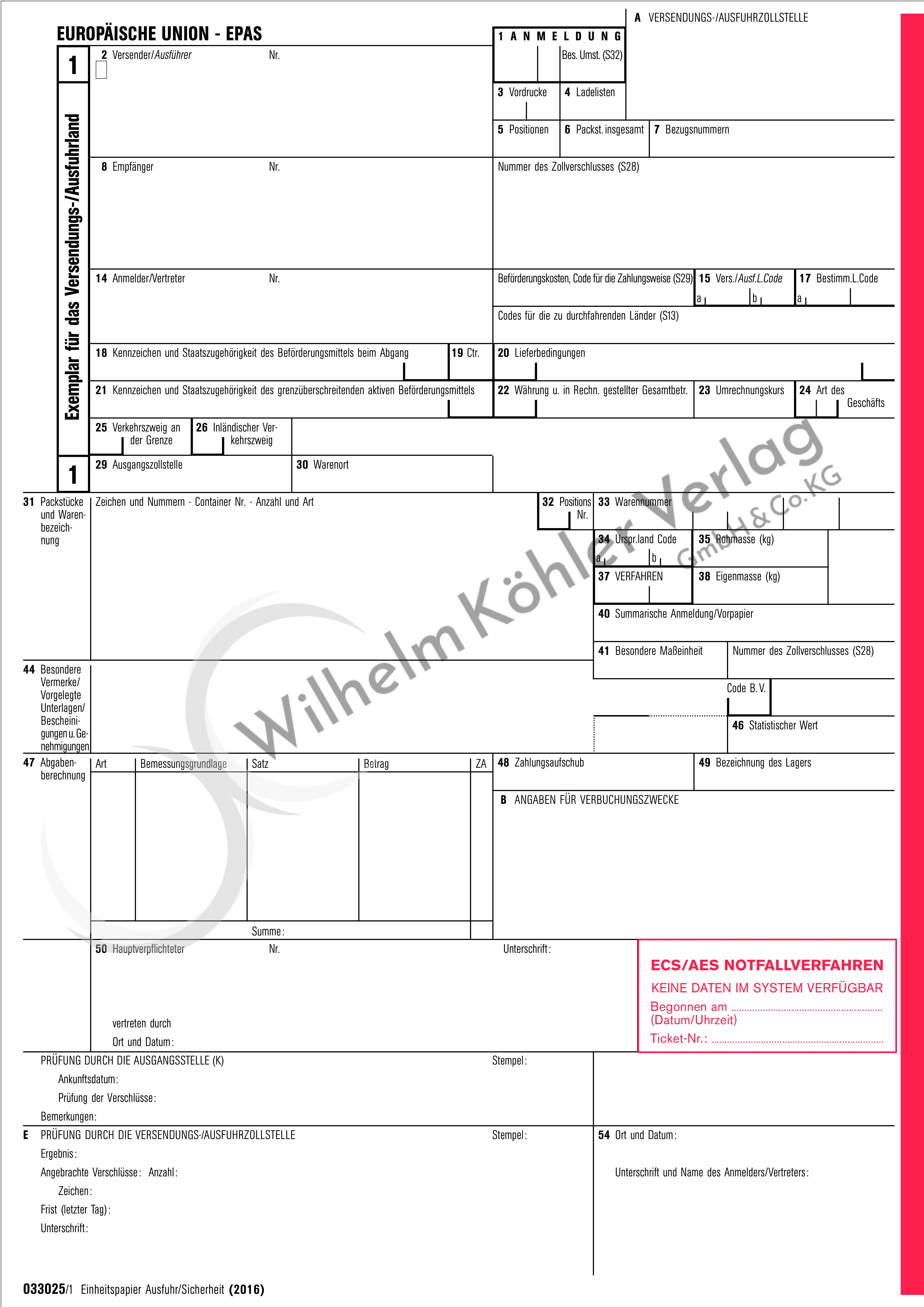Produktinformationen "033025 Einheitspapier "EPAS" Ausfuhr/Sicherheit "