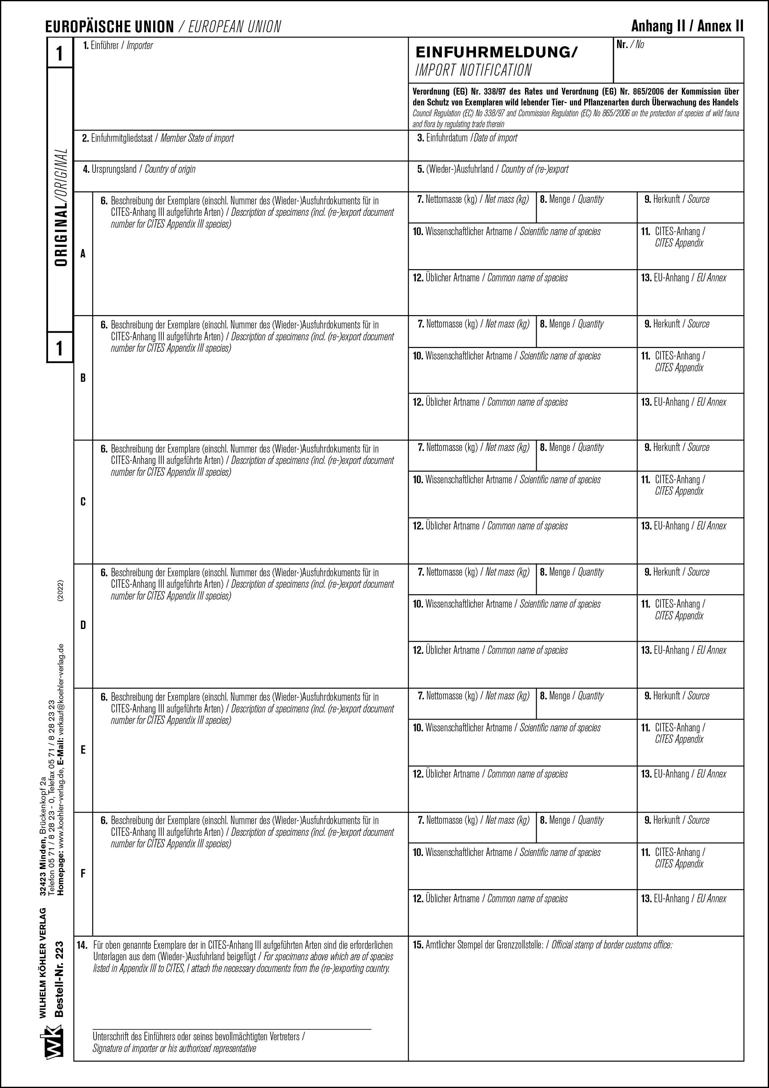 Produktinformationen "223 CITES-Einfuhrmeldung "