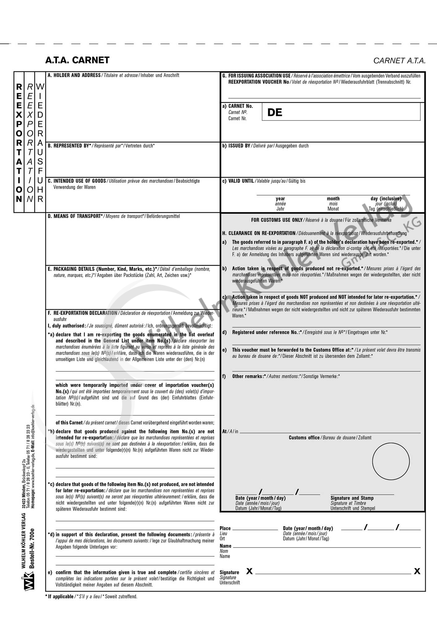 Produktinformationen "700e Wiederausfuhrblatt-Reexport "