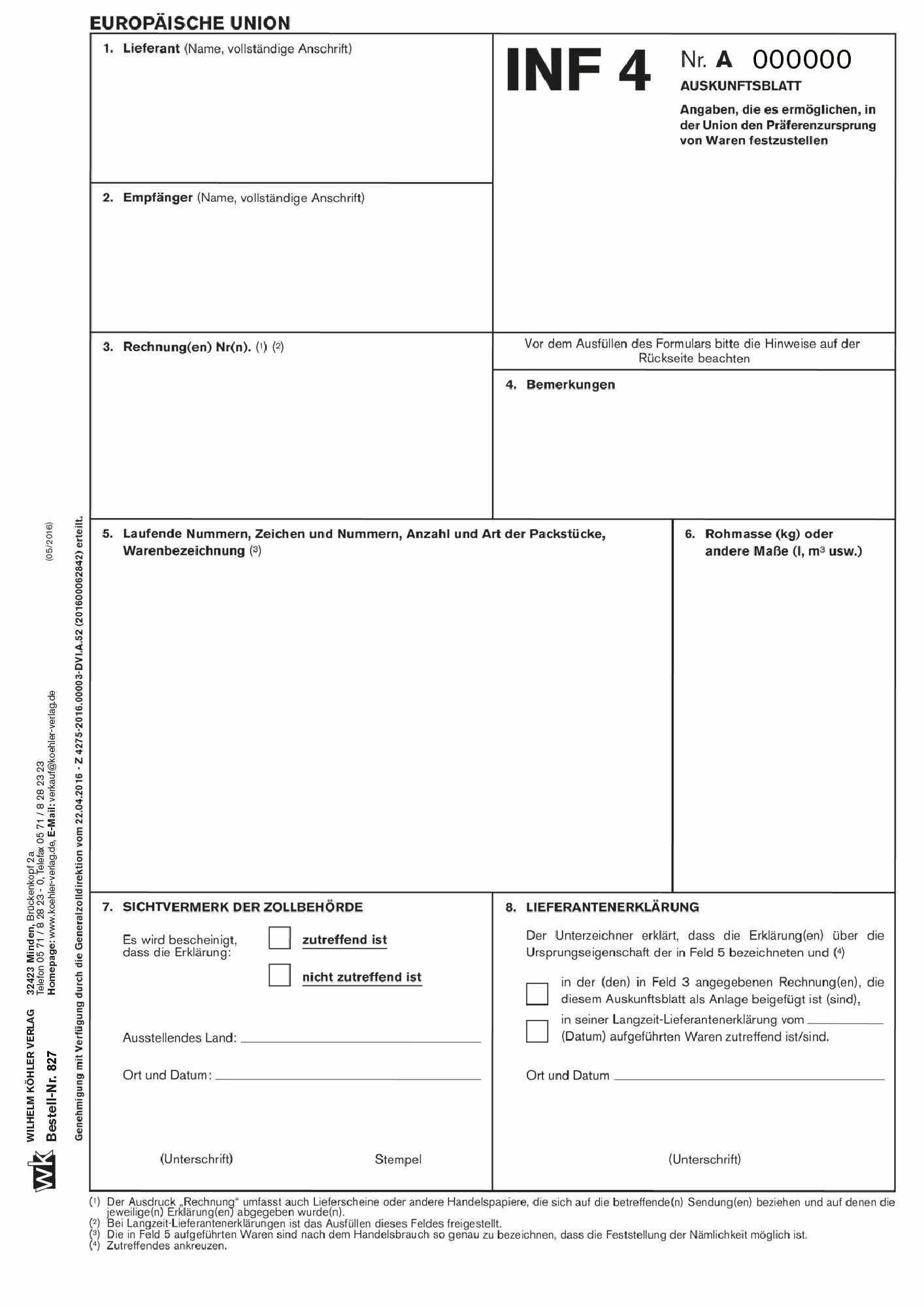 Produktinformationen "827 INF 4 Auskunftsblatt "