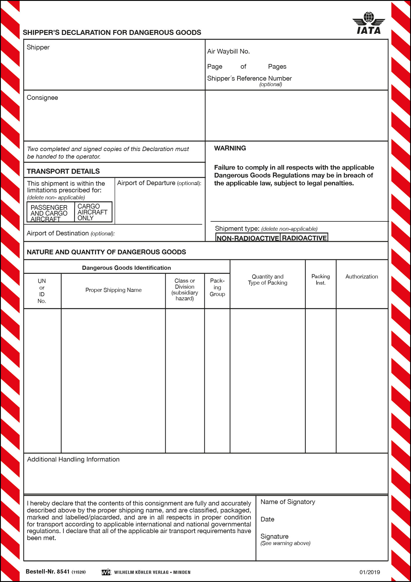 8541 Shippers Declaration Luftverkehr IATA (ehem. Order No.: 11529)