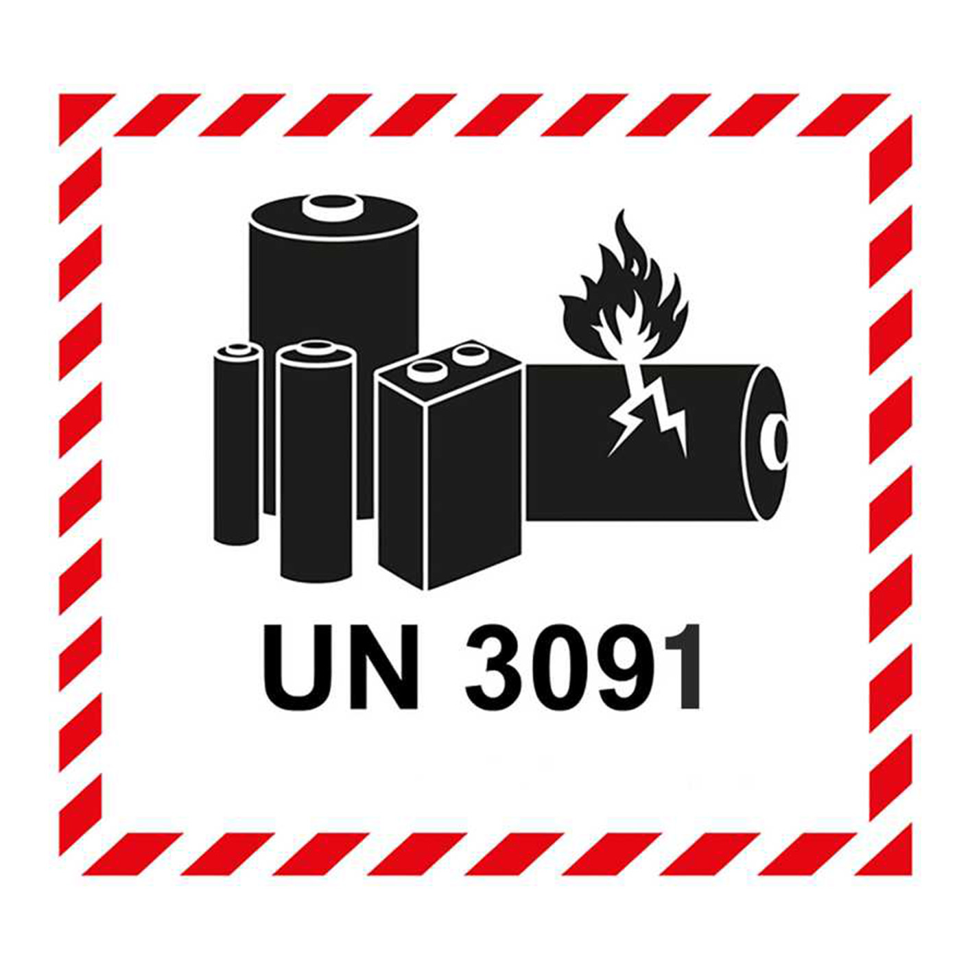 Dieses Etikett ist zusätzlich mit der Nummer "UN 3091" versehen.
