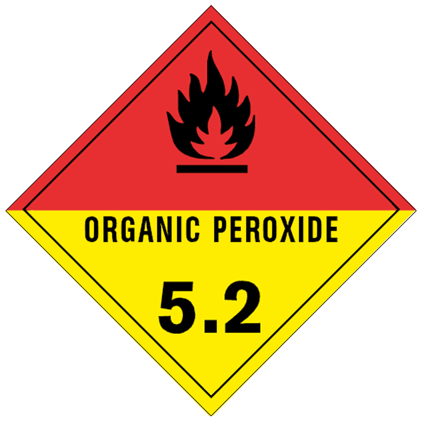 Der Gefahrgutaufkleber der Klasse 5.2 kennzeichnet organische Peroxide sowie deren Zubereitungen. Gemäß ADR 2.2.52.1.3 handelt es sich bei organischen Peroxiden um Stoffe, die das bivalente -O-O-Strukturelement enthalten und als Derivate des Wasserstoffperoxids gelten, bei denen ein oder beide Wasserstoffatome durch organische Radikale ersetzt sind.
