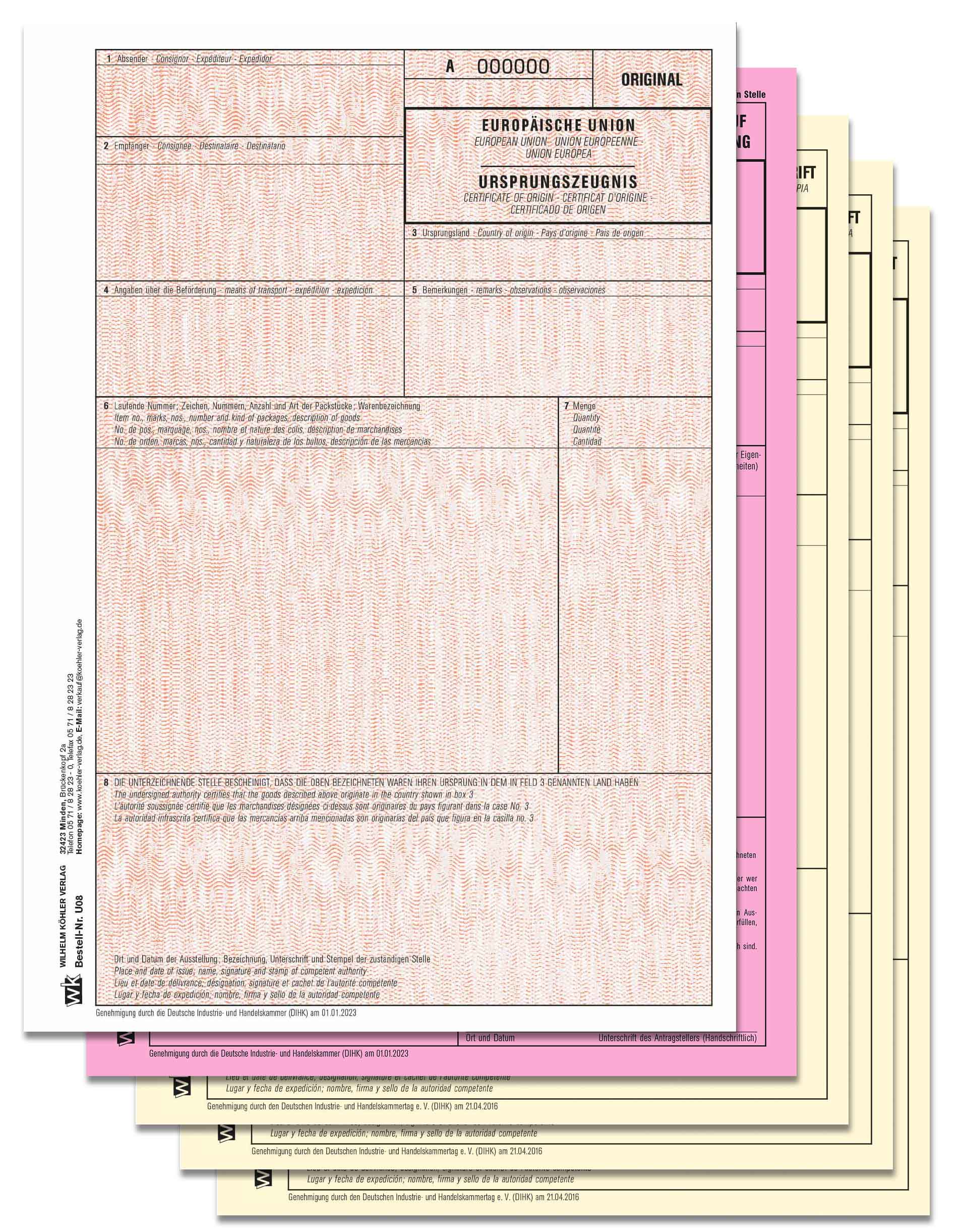 Produktinformationen "U08 Ursprungszeugnis - MIT Nummer, mit Kennung A "